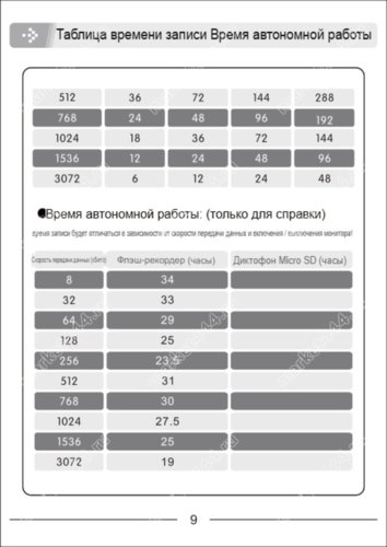 | 18. Энергосберегающие режимы | Автоматическое выключение диктофона, «в режиме ожидания»; отключение по таймеру; автоматическое выключение подсветки дисплея. |
